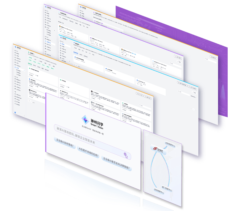 打通GenAI落地企业的算力、、、、模型、、知识、、、应用四大要素,,,,综合解决GenAI工程在选、、、、练、、、用、、管四大环节的问题,,旨在为企业的数智化转型提供全套的GenAI智能应用工程流水线。。。。今年会问学包括模型算力管理平台、、、企业私域知识管理平台、、、、AI应用工程平台三大模块,,为企业提供更先进、、、、更匹配的大模型,,,,解决了算力上信创适配、、、融合调度、、、、企业私域大模型高效推理训练问题,,同时解决了数据到知识的向量化以及场景应用的轻量化组装问题。。