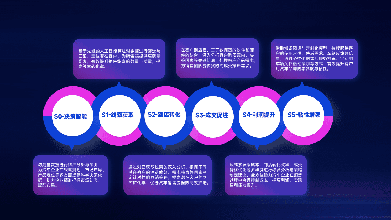 通过拓宽潜在客户来源、、、、优化线索分配并提高到店转化率,,,,以增强销售效率。。同时,,,,利用线索数据不断优化分析模型,,,,有效提升转化率,,,,扩大营销影响力。。